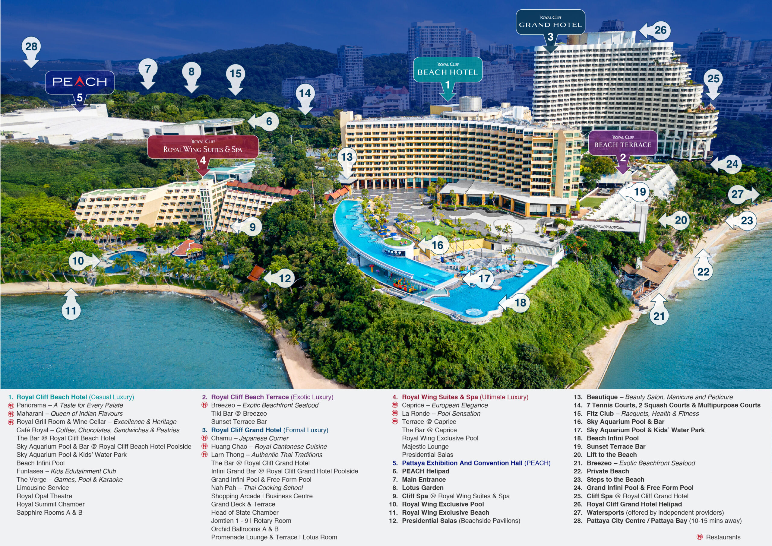 - เลี้ยวซ้ายอีกครั้งเมื่อถึงป้อมตำรวจ ท่านจะเห็นป้ายของรอยัล คลิฟ โฮเต็ล กรุ๊ปขับตามป้ายมาเรื่อยๆ จะเจอทางเข้า